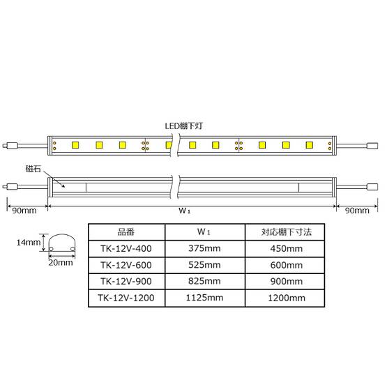 | 製品名: | LED棚下灯 ライト 薄型 TK-12V-900-30K 電球色 3000K 適用棚900mm マグネット 取付金具付 調光可能 スリムライト 棚下照明 連結可能 |