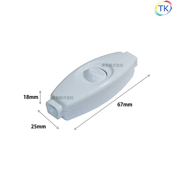 シーソー式中間スイッチ ミニコードスイッチ TK-ASPW 平形コード用 3A ホワイト 白色 「10個までメール便対応可能」