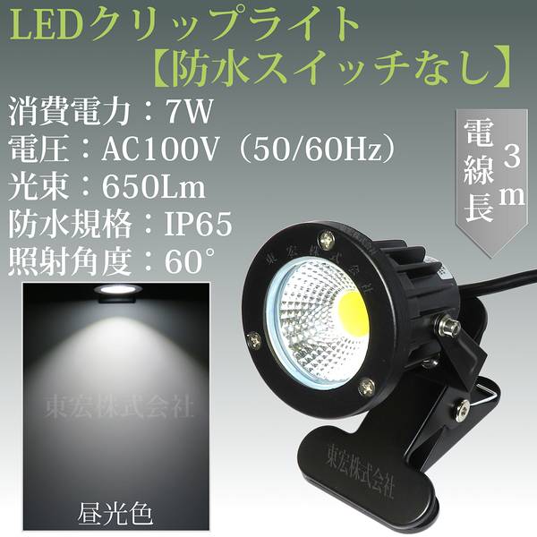 白色 昼光色 LEDクリップライト 小型 (PSE)規格品 防雨 防水型 7W (50W相当) スイッチなし コード長3m 看板用・黒板用照明/店舗看板用/店頭看板/LEDライト/電気スタンド/デスクスタンド/アームライト/ピッコロライト/アウトドア・エクステリアライト