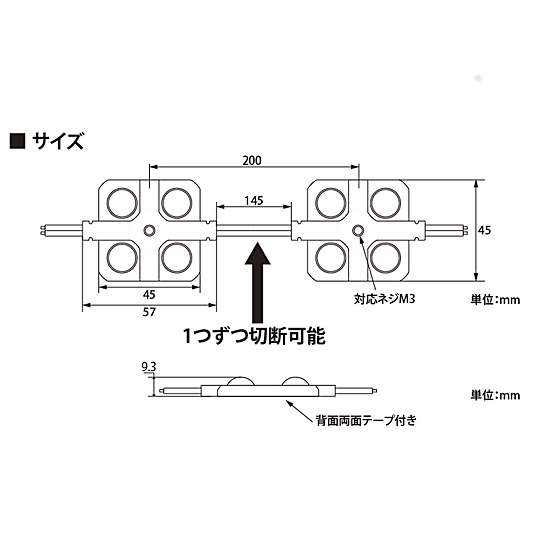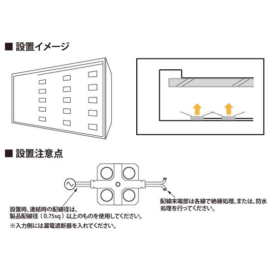 LEDモジュール TK-AC-SM288-60K 正方形 防水 100V直結タイプ ホワイト 消費電力1.8W 昼光色相当 100Vモジュール コンパクト スリム 4灯タイプ 内照アクリル FF看板 薄型