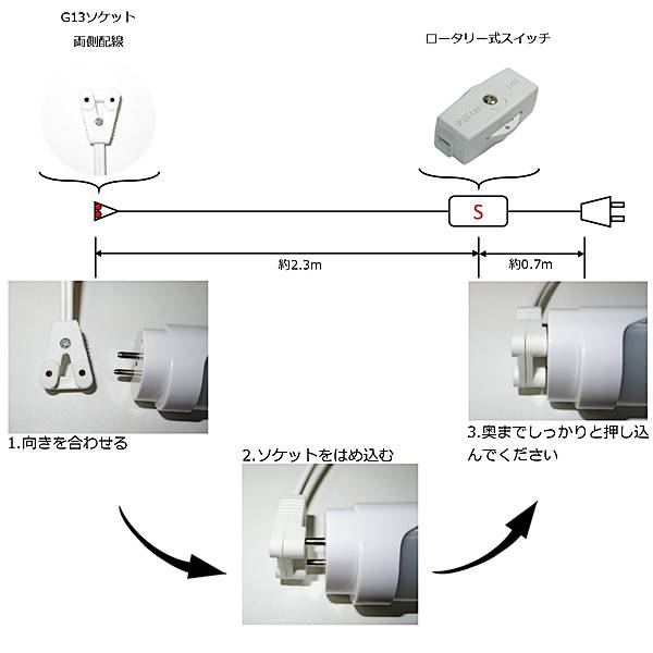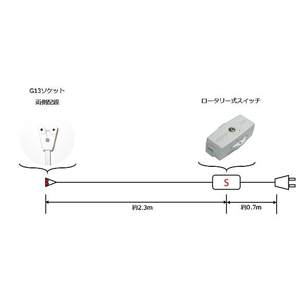 G13用ソケットプラグコード TK-LTSC05 ロータリー式スイッチ付 コンセント直結ACプラグコード 片側給電方式LED蛍光灯用 はめ込み式 仮設照明用
