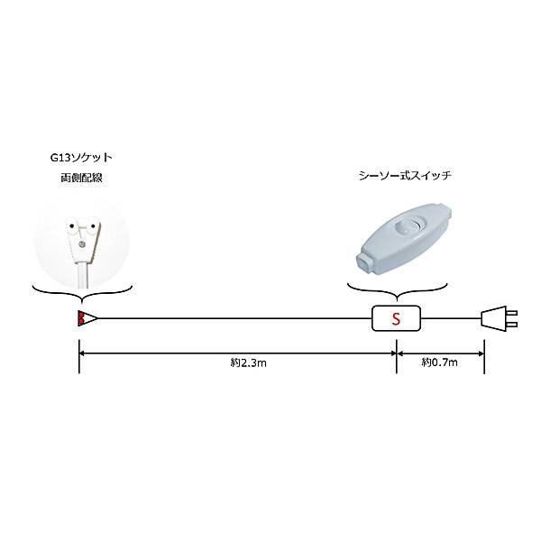 G13用ソケットプラグコード TK-LTSC05P シーソー式スイッチ付 コンセント直結ACプラグコード 片側給電方式LED蛍光灯用 はめ込み式 仮設照明用