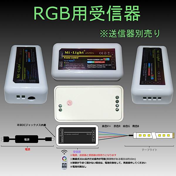 無線式受信器 TK-RPRC3 RGB用 専用リモコンで最大4グループまで登録が可能 LEDテープライト LEDシリコンライト ※本商品は受信器のみです。リモコン部は別売りとなります