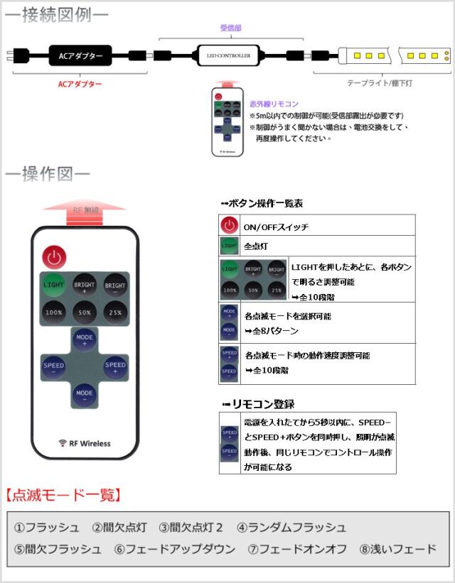 TK-S2SC1 単色用コントローラ スイッチ 点滅調光リモコン式 LEDテープライト LEDシリコンライト LED棚下灯 LED棚下ライト